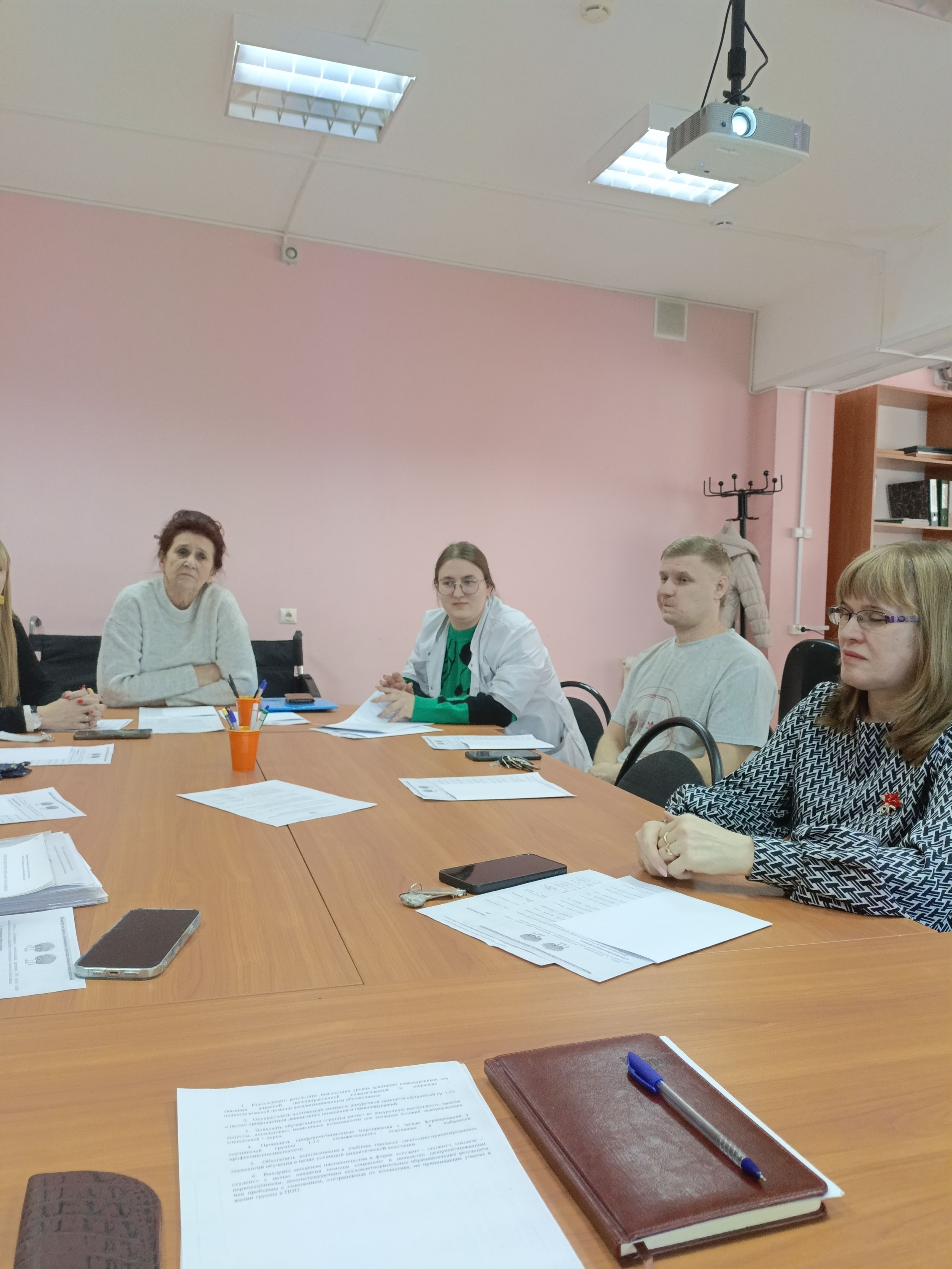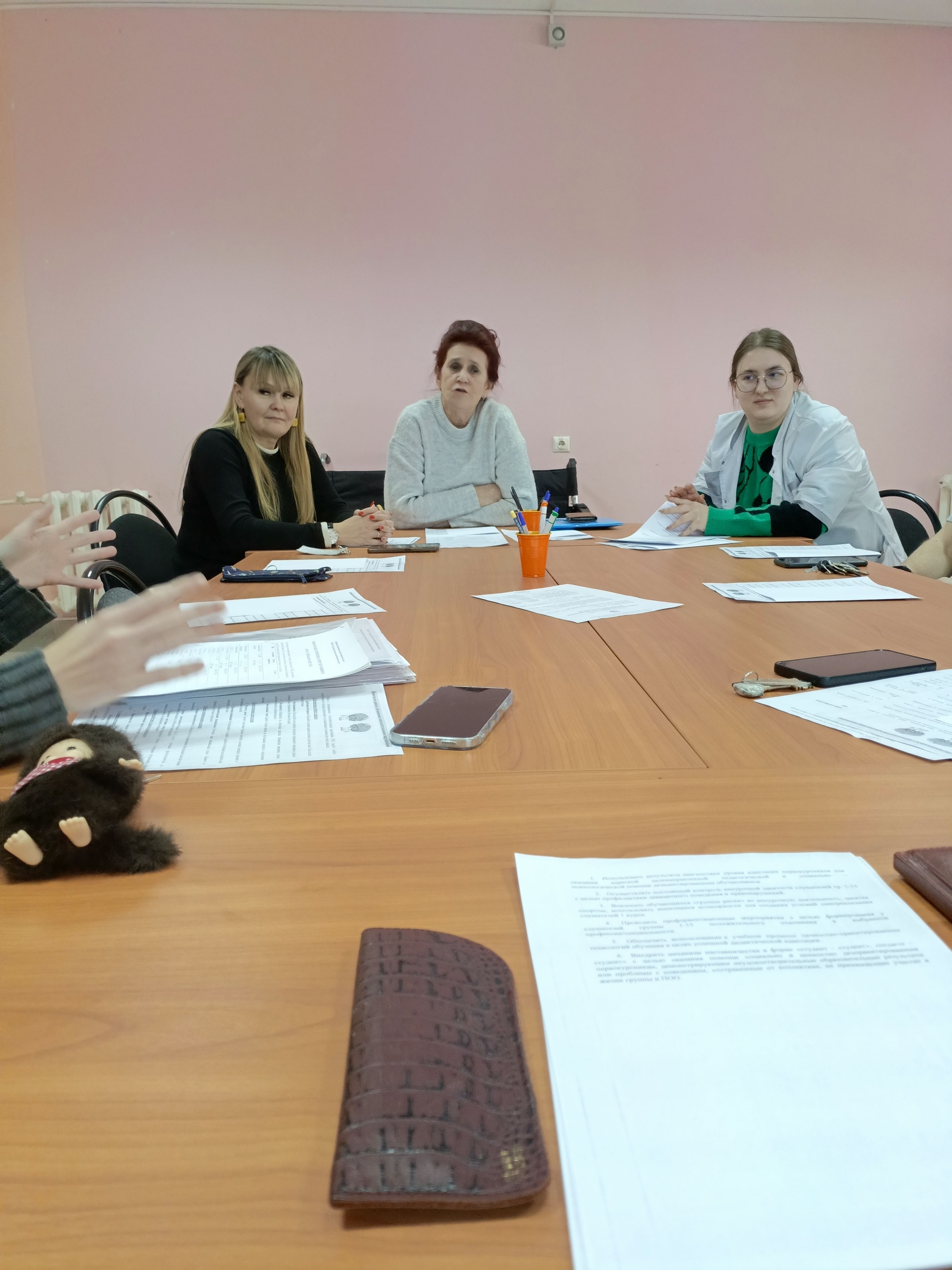 Педагоги-предметники и мастера производственного обучения, работающие в группе, обменялись мнениями, обсудили проблемы, возникающие в процессе взаимодействия с группой. Максим Александрович Ефименко, преподаватель физкультуры, поделился планами вовлечения обучающихся группы 1-15 в ЧД «Абилимпикс-26» по компетенции «Адаптивная физическая культура», что, несомненно, будет способствовать успешной социализации ребят и повышению уровня их самооценки.
